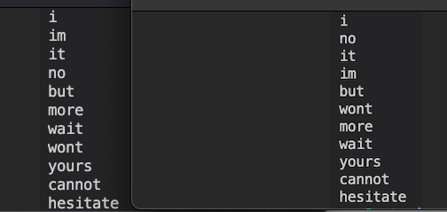 ์ฒซ์งธ ์ค์ ๋จ์ด์ ๊ฐ์ N์ด ์ฃผ์ด์ง๋ค. (1 ≤ N ≤ 20,000) ๋์งธ ์ค๋ถํฐ N๊ฐ์ ์ค์ ๊ฑธ์ณ ์ํ๋ฒณ ์๋ฌธ์๋ก ์ด๋ฃจ์ด์ง ๋จ์ด๊ฐ ํ ์ค์ ํ๋์ฉ ์ฃผ์ด์ง๋ค. ์ฃผ์ด์ง๋ ๋ฌธ์์ด์ ๊ธธ์ด๋ 50์ ๋์ง ์๋๋ค.