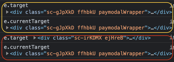 ๋ชจ๋ฌ ์ธ ์์ญ ํด๋ฆญ ์ : cliked์ <payModalWrapper>๊ฐ ๋ค์ด๊ฐ