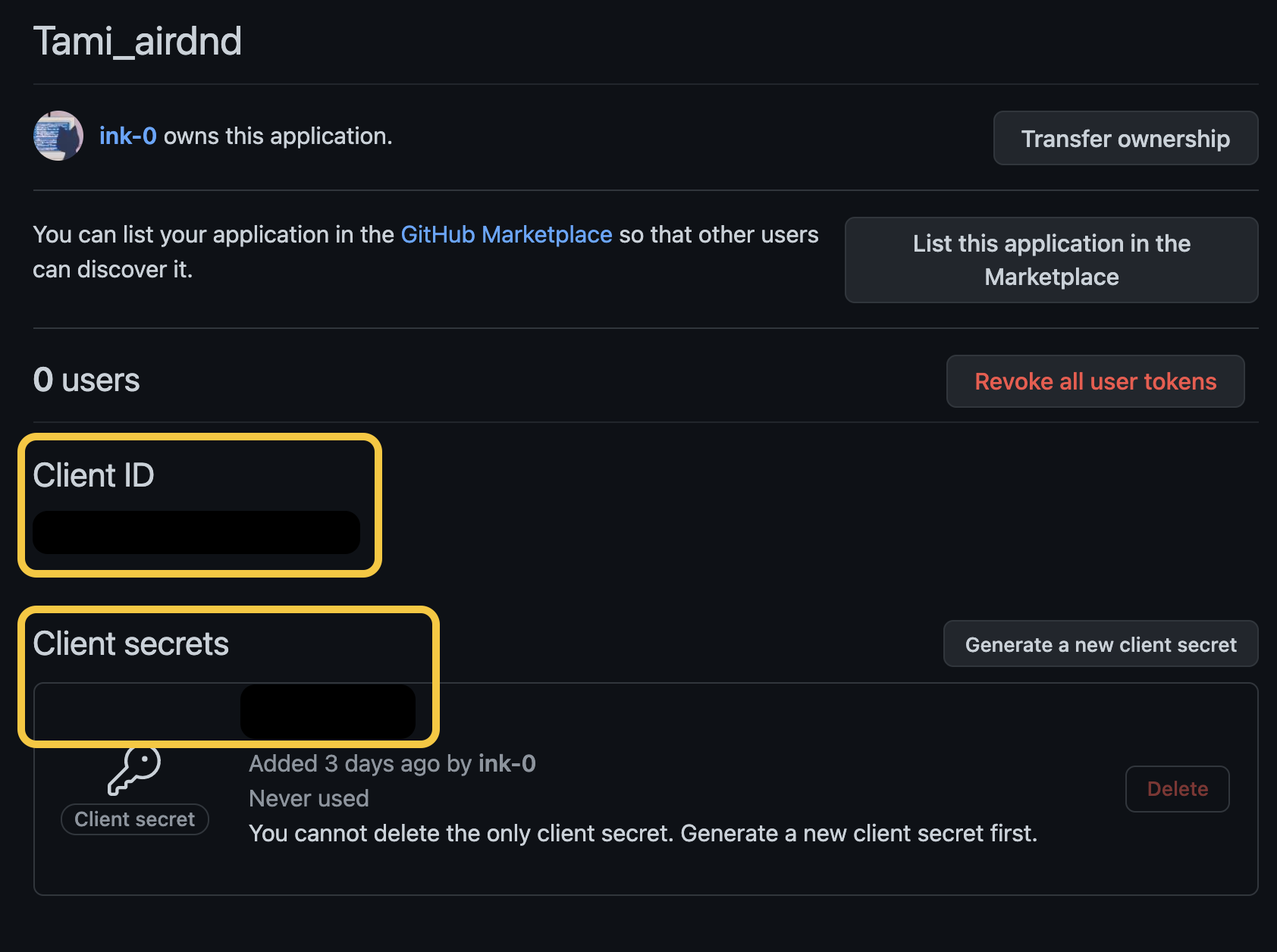 1) ๊นํ๋ธ์์ Application ๋ฑ๋ก