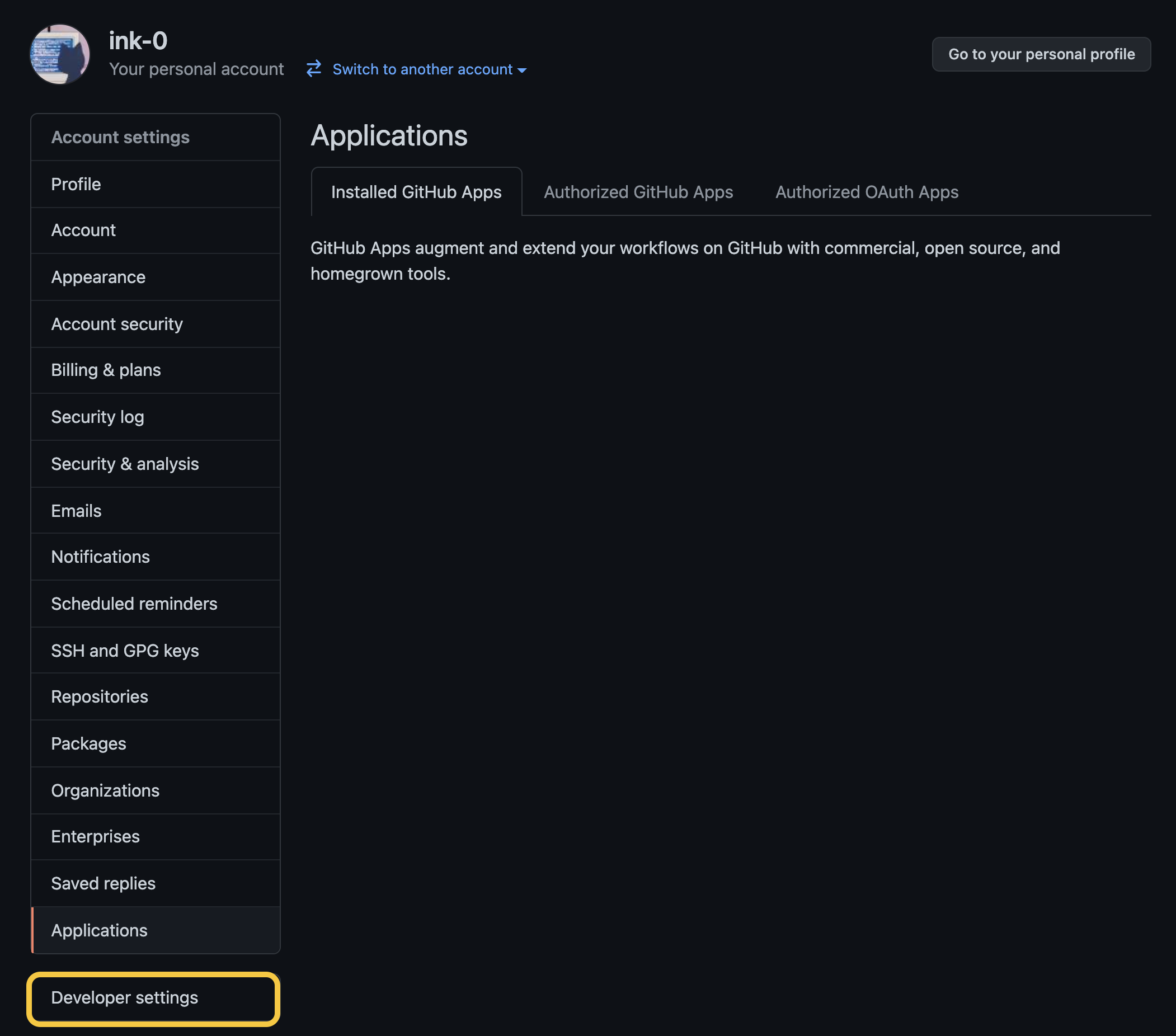 ๊นํ๋ธ - settings - Developer settings - OAuth Apps - new OAuth App