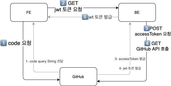 2) โ FE๋จ์์ code ์์ฒญํ ํ GET์ผ๋ก jwt ์์ฒญ (BE์์ POST ์ฒ๋ฆฌ)