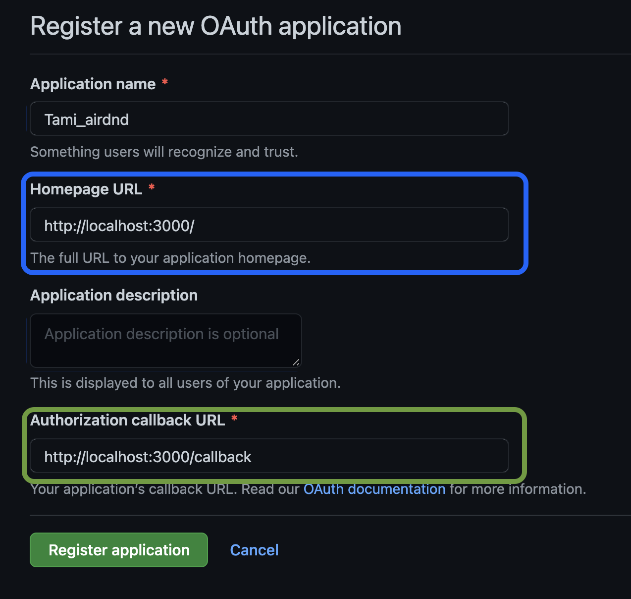 Homepage URL๊ณผ callback URL์ ๋ฐฐํฌ ์ localhost๋ก ์ฌ์ฉํ๋ค ๋ฐฐํฌ ์ ๋ฐฐํฌ ์ฃผ์๋ก ๋ณ๊ฒฝํด์ค์ผ ํ๋ค.