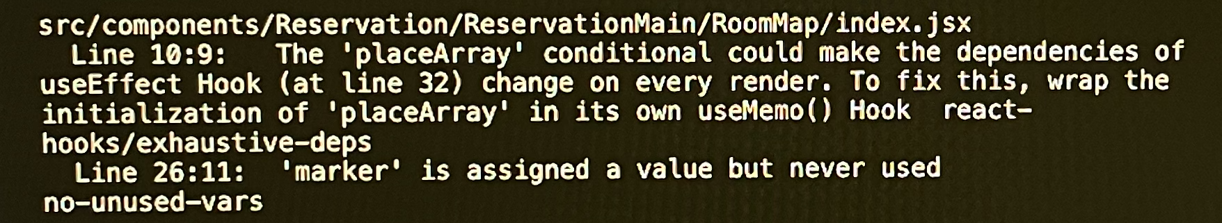 RoomMap ์์์ ์์ฒด ์์ฑํ๋ ๋ณ์๋ useEffect์ ์์กด์ฑ ๋ฐฐ์ด์ ๋ฃ๋ ์๋ฏธ๊ฐ ์๋ค