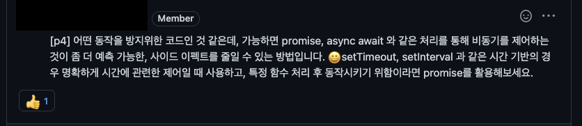 ๋ฐฐ์ ์์ง๋ง ์ ์ ์์๋ ๋น๋๊ธฐ ์ ์ด = ์๊ฐ ๊ธฐ๋ฐ์ ๋ณ๊ฒฝ์ ์๊ฐ์ ๊ด๋ จ๋ ๋๋ง ์ฌ์ฉํ๊ณ ๊ทธ ์ธ์๋ ์ฌ์ด๋ ์ดํํธ๋ฅผ ์ค์ผ ์ ์๋ promise์ async๋ฅผ ์ฌ์ฉํ์!