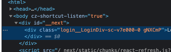 실제로 Element를 확인하면 class= 'login_LoginDiv-sc-v...."로 되어있는데