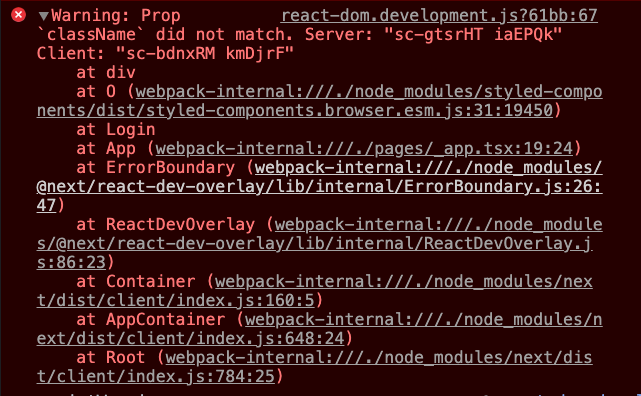 Next.js 로 styled-components로 스타일을 적용한뒤에 난 오류!