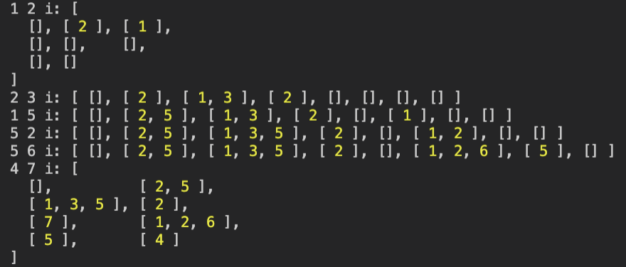 - ๊ทธ๋ํ ๋ฐฐ์ด์ ๋๋ฉด์ ํด๋น graph๋ฅผ ๋ฐฉ๋ฌธํ๋์ง ํ์ธํ ํ