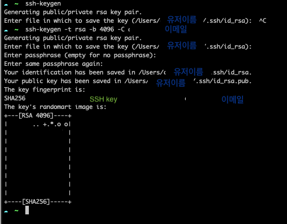 공개 키는 /c/Users/유저이름/.ssh/id_rsa.pub에 저장되었습니다.