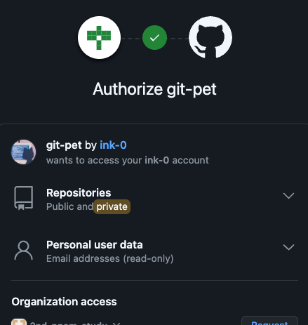When an OAuth App wants to identify you by your account on GitHub.com, you'll see a page with the app's developer contact information and a list of the specific data that's being requested. OAuth App access OAuth Apps can have read or write access to your