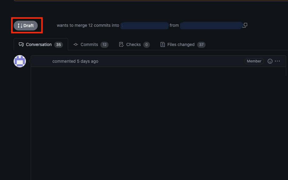 PR이 Draft상태이면, 아직 작업중이라는 것이고, 검토할 준비가 될 때까지 리뷰를 달거나 머지할 수 없다.