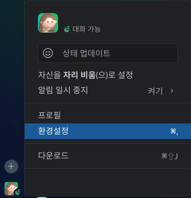 1-1) 좌측 하단 프로필 클릭 > 환경설정