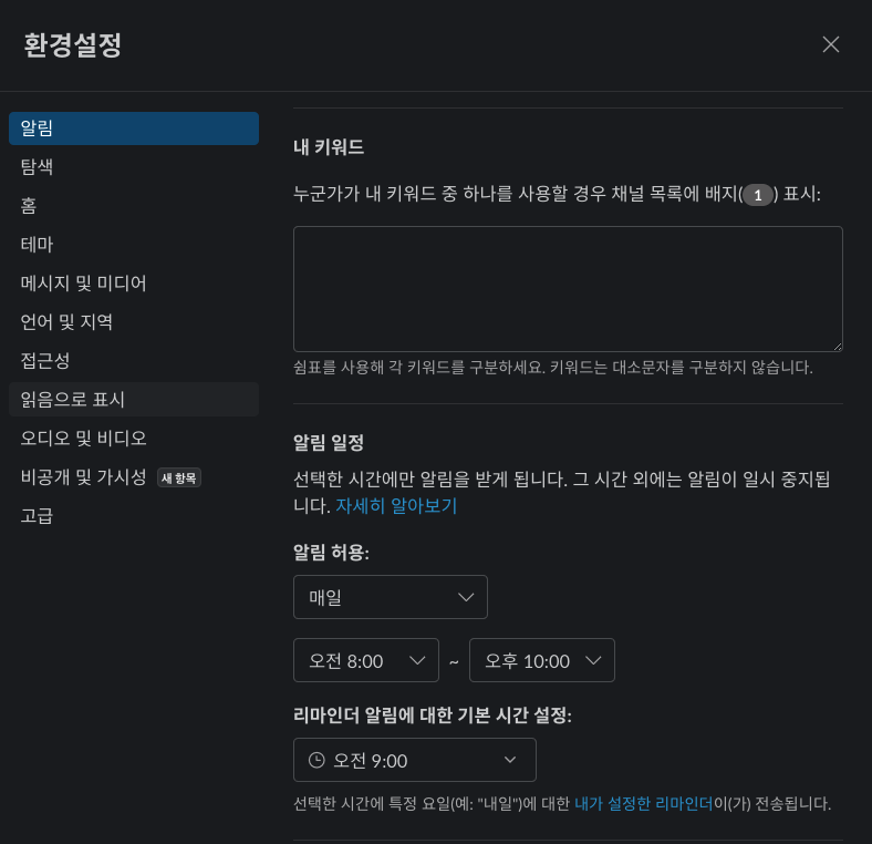 1) Slack 환경설정 확인