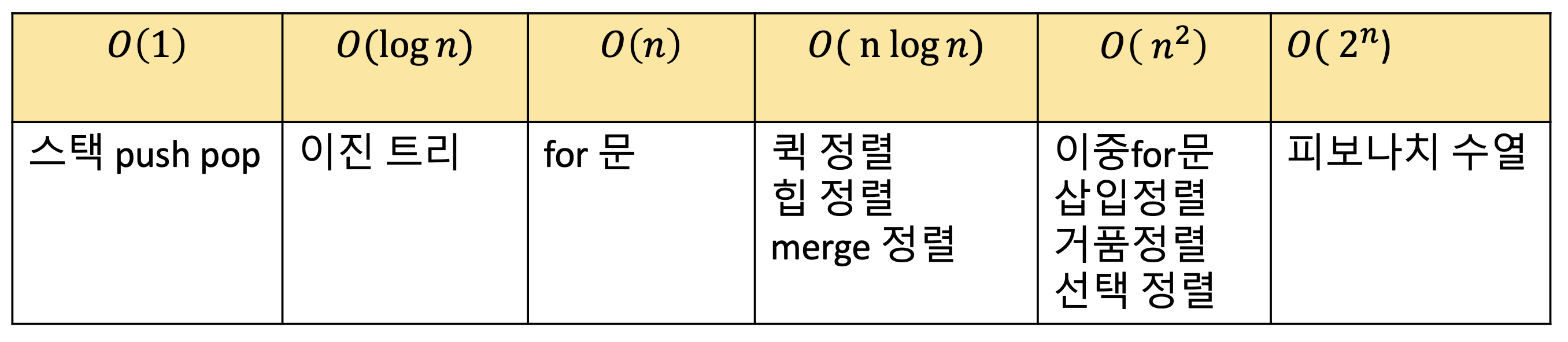 | 빅오(Big-O) | 빅오메가(big-Ω) | 빅세타(big-Θ) |