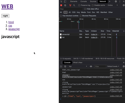 tags = <li><a href="#!html"onclick="fetchPage('html')">html</a></li> <li~~~
