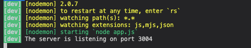 참고로 매번 node 바뀔 때 마다 새로고침 하기가 귀찮아 nodemon을 실행중이어서 nodemon이 나왔다.