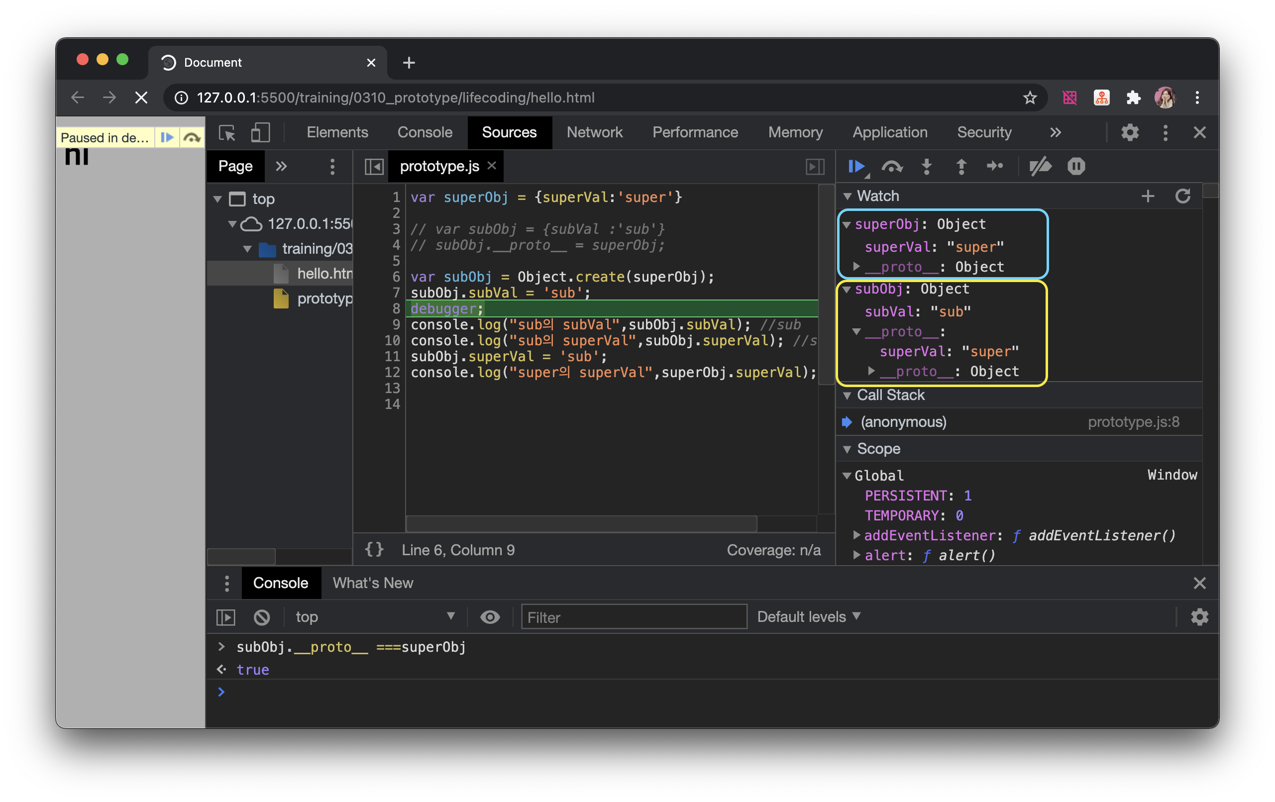 subObj์ __proto__ ๋ superObj