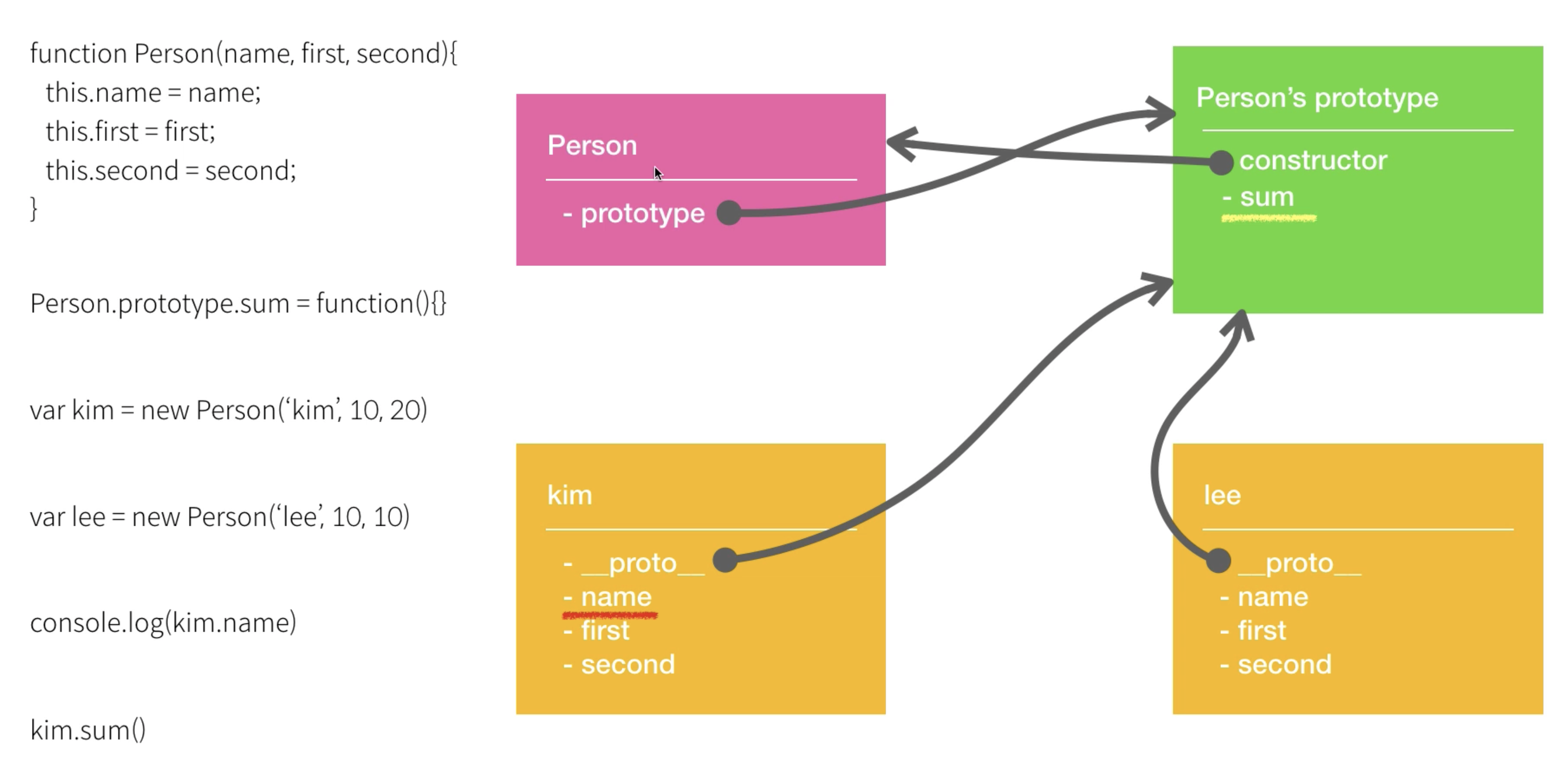 | Person | Person.prototype | kim | lee | __proto__ |