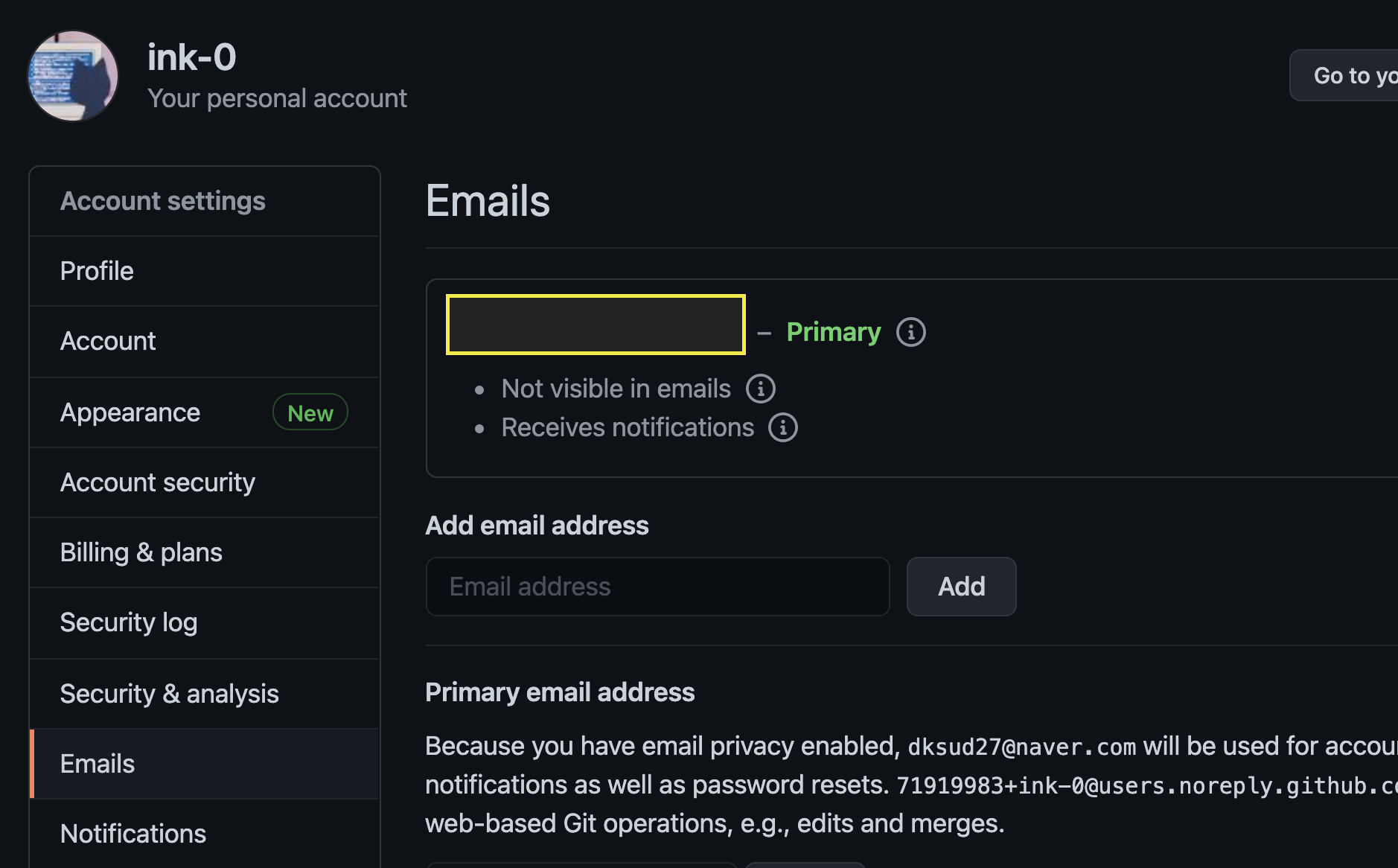 1) 깃허브 계정의 이메일 주소 확인하기